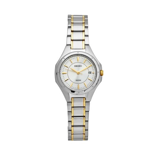 On Sale Seiko Women's SXDE14 Two Tone Stainless Steel Analog with Silver Dial Watch